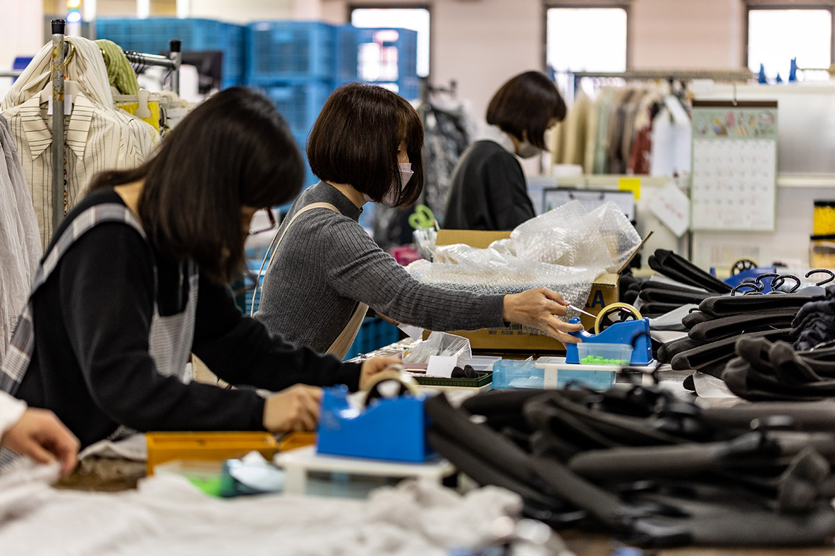 しかし、アトリエ・ミストの検品は特別です。不良の商品の返送はせずに、当社にて補修・汚れ落とし、そしてプレス作業までワンストップで行っております。